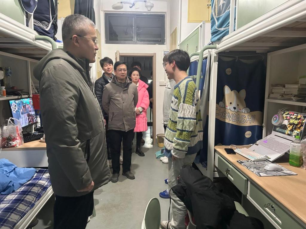 走访过程中,老师们关心询问同学们寒假期间的学习和生活状况,围绕宿舍安全、学业规划等与学生亲切交流,鼓励新学期养成优良习惯,制定新计划,加强自我学习;同时,叮嘱学生严格遵守宿舍管理要求,注重人身财产安全和宿舍用电安全,增强安全防患意识;勉励宿舍成员相互包容、携手共进,共同营造良好的学习氛围和整洁的宿舍环境。同学们纷纷表示,将牢记领导老师的嘱托与教诲,以饱满的精神状态迎接新学期新挑战。