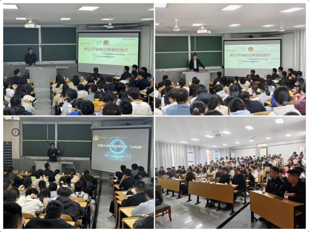 要充分结合学生特点,有针对性地开展校园反诈工作。陈延龙结合近年来全国及省内高校频发的诈骗案例,详细讲解诈骗手段的新趋势,强调学习反诈知识对于保障个人财产安全、维护校园稳定至关重要。孔涛进一步补充真实案例,通过还原作案流程、话术陷阱及受害者心理变化,由点及面,深入解析“刷单诈骗”等常见骗局的套路。