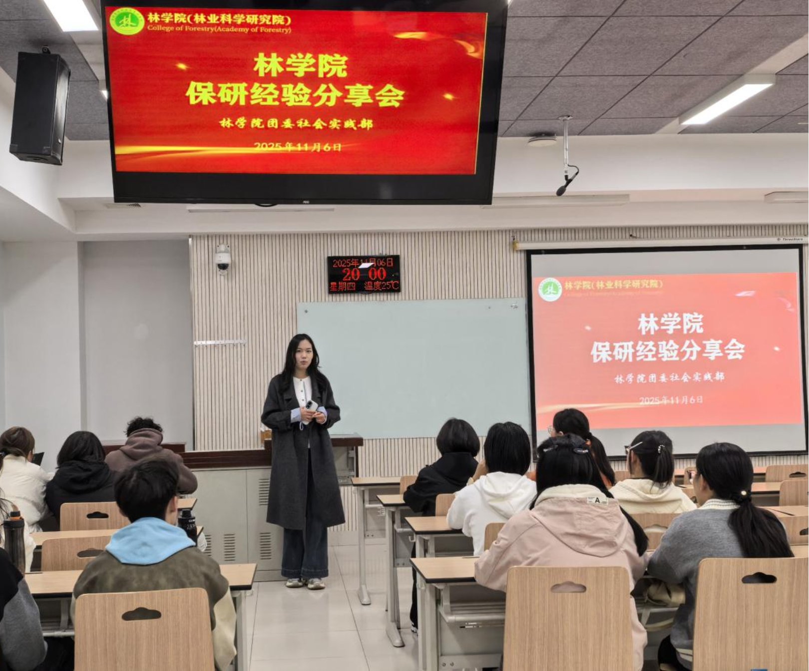 为帮助低年级学生更好科学规划升学路径提供切实指导,林NBA投注平台 社会实践部在11月6日晚于北校区八号教学楼举办保研经验分享会。